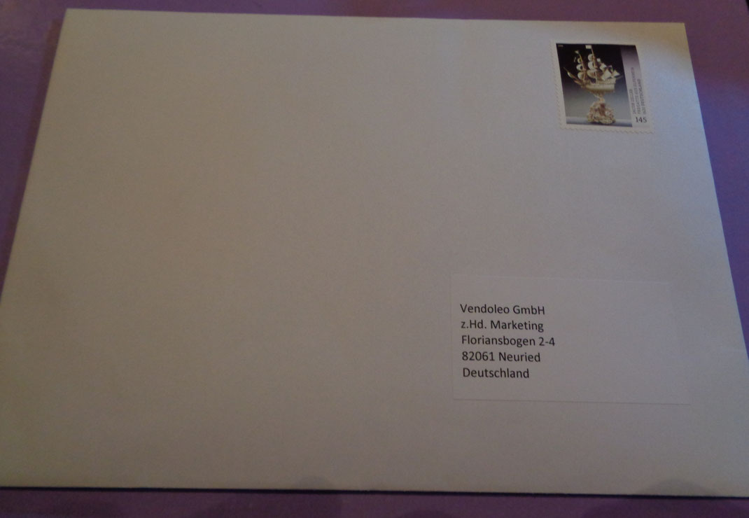 Und da ist der Rückumschlag wo die 5 Fragebögen nun drin sind und morgen abgeschickt werden. Am 9. Mai endet die Testphase